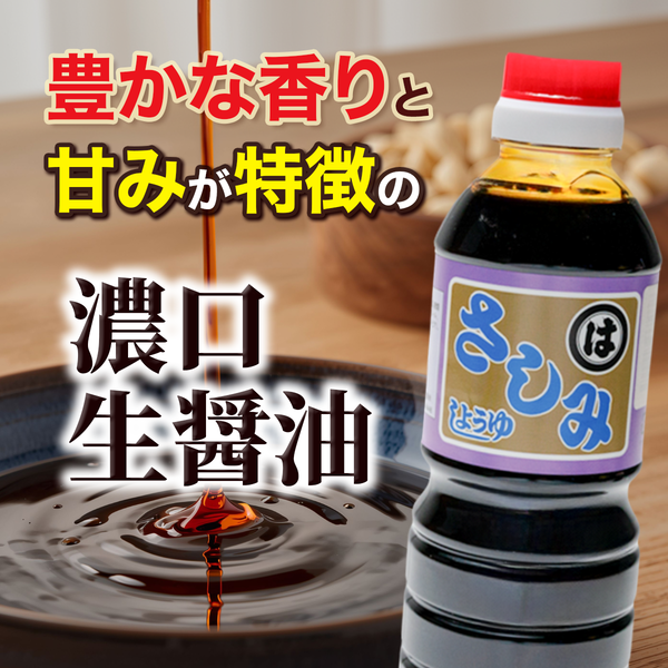 色が濃く、ゆたかな香りと塩分をおさえた甘味成分の多いこの醤油は刺し身に最適です。